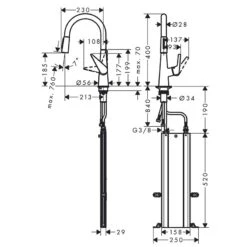 This Stylish AXOR Citterio M Single Lever Kitchen Mixer With Pull Out Spray is finished in Polished Red Gold. This Axor ComfortZone 220 lever kitchen tap provides space for greater freedom of movement. Consider this kitchen tap to finish off your kitchen today.