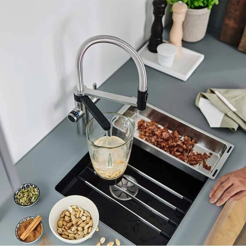 - 3-in-1 semi-pro mixer tap: cold, hot and filtered cold water