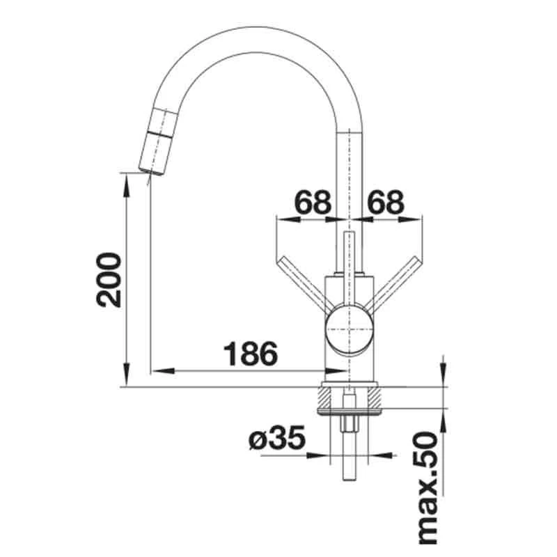 Blanco LIVIA-S mixer taps with an extendible hose meet all the expectations of a modern kitchen mixer tap. Regardless of whether your kitchen is compact or spacious, S-shaped mixer tap models with a pull-out hose provide greater operating comfort when using sinks of any size or design.
