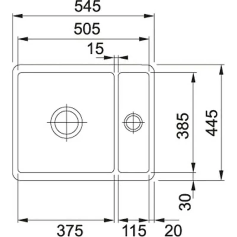 Franke Kubus 1.5 Bowl Undermount Ceramic Kitchen Sink Reversible KBK 160-38-12 – Matt Pearl Grey – 126.0532.324 Details