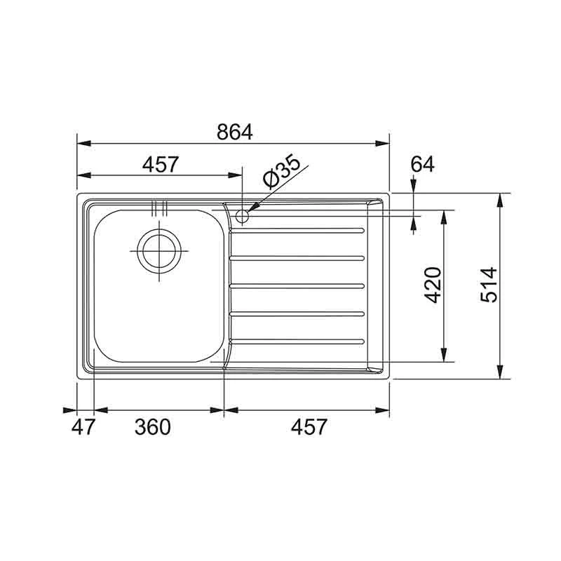 Franke Neptune 1 Bowl Sink with Right Hand Drainer NEX 211 – Stainless Steel – 127.0059.654 Details