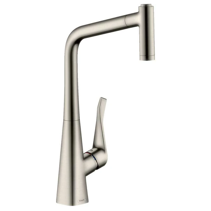 hansgrohe Metris M71 EcoSmart Single Lever Kitchen Mixer Tap 320 With Pull-Out Spray 2 Spray Modes – Stainless Steel – 14780800