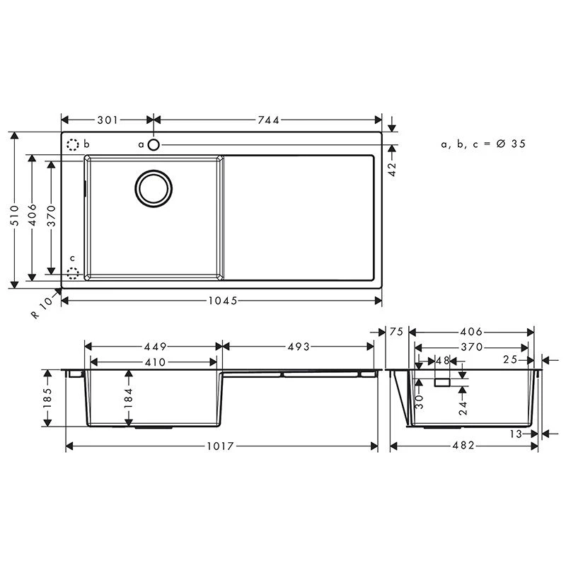 hansgrohe S716-F450 Built-in Sink 450 with Drainboard Right – Stainless Steel – 43331800 Details