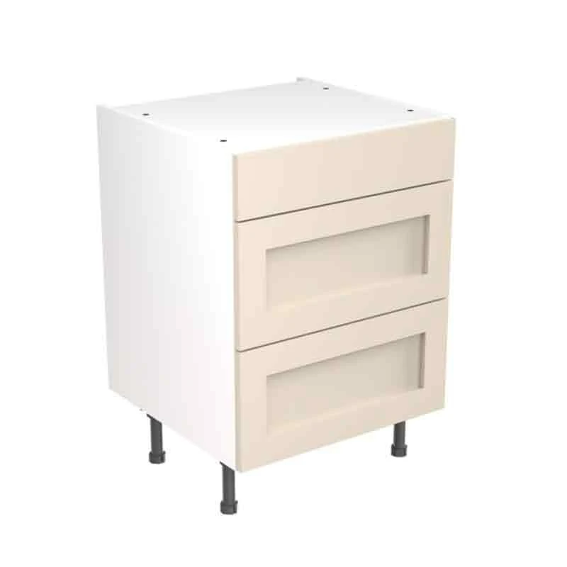 Kitchen Kit Shaker 600mm 3 Drawer Base Cabinet – Ultra Matt – Cashmere – FKKH0606