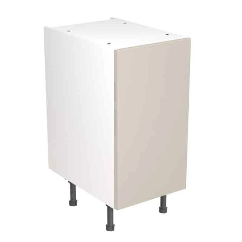 The Kitchen Kit Slab 400mm Base Cabinet features doors which can be hinged on the left or right side of this kitchen unit to best suit your layout. The four adjustable legs make it easy to achieve maximum stability, while a 49mm service void allows you plenty of space for concealing pipes or wiring. This product also comes with a 6 year manufacturers guarantee for your peace of mind.