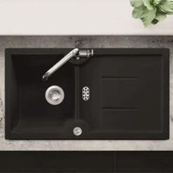 Thomas Denby Harmony XL 1 Bowl Reversible Ceramic Kitchen Sink & Drainer – Black Satin – HAR1010BL