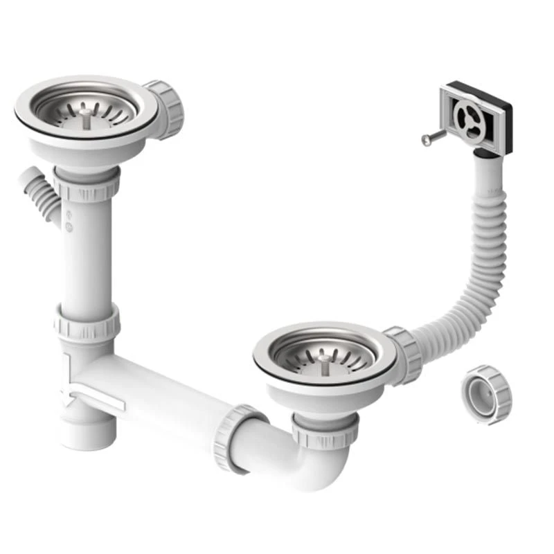 This Leisure basket strainer waste with plumbing kit & trap is manufactured from high quality polypropylene material. The strainer waste features a twin design allowing for two outlets to be plumbed in together. Consider this kitchen waste kit to finish off your kitchen in style