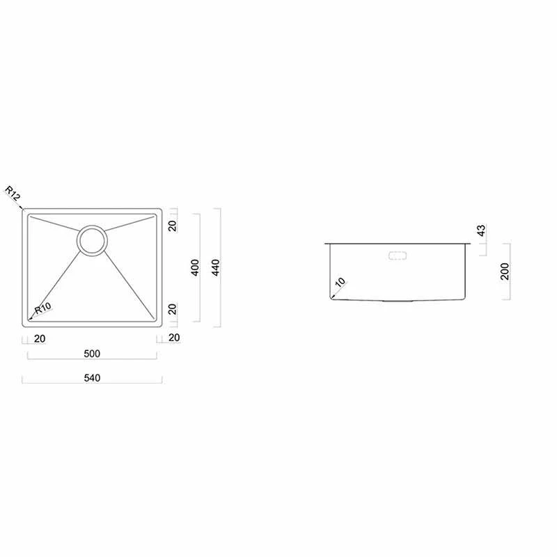 - Overall bowl dimensions (LxWxD): 500x400x200mm