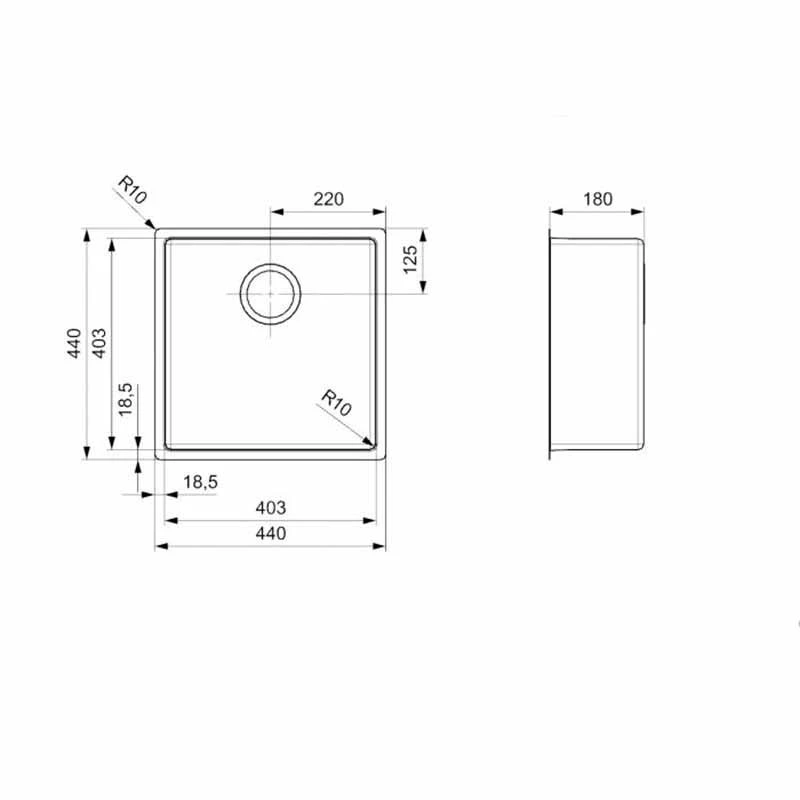 Reginox New York 1 Bowl Integrated Sink – Jet Black – NEW YORK 40X40 JB