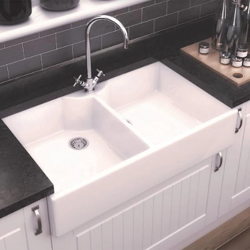 Thomas Denby Heritage 900mm Ceramic Double Bowl Kitchen Sink – White – Details